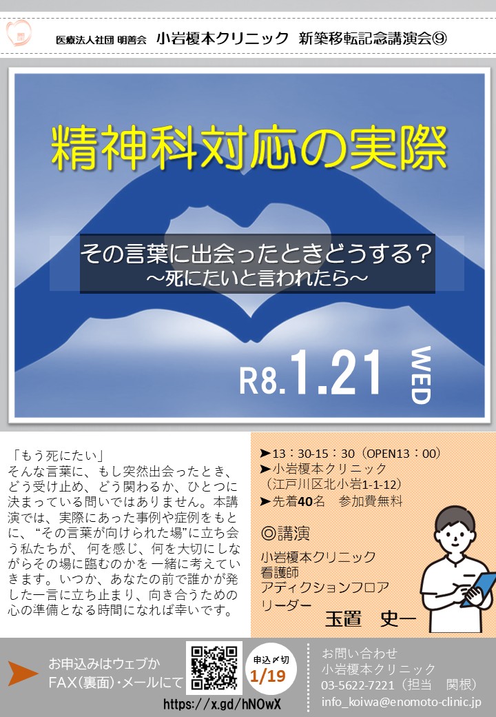 【リアルのみ】2026.1.21 小岩「その言葉に出会ったときどうする?~死にたいと言われたら~」