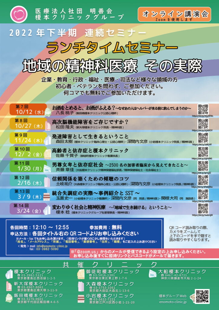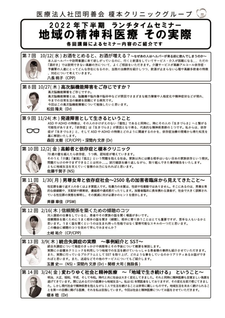【zoomランチタイムセミナー】2022年下半期予定 「地域の精神科医療 その実際」