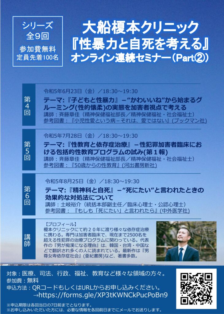 大船榎本クリニック 「性暴力と自死を考える」 オンライン連続セミナー(PART②)