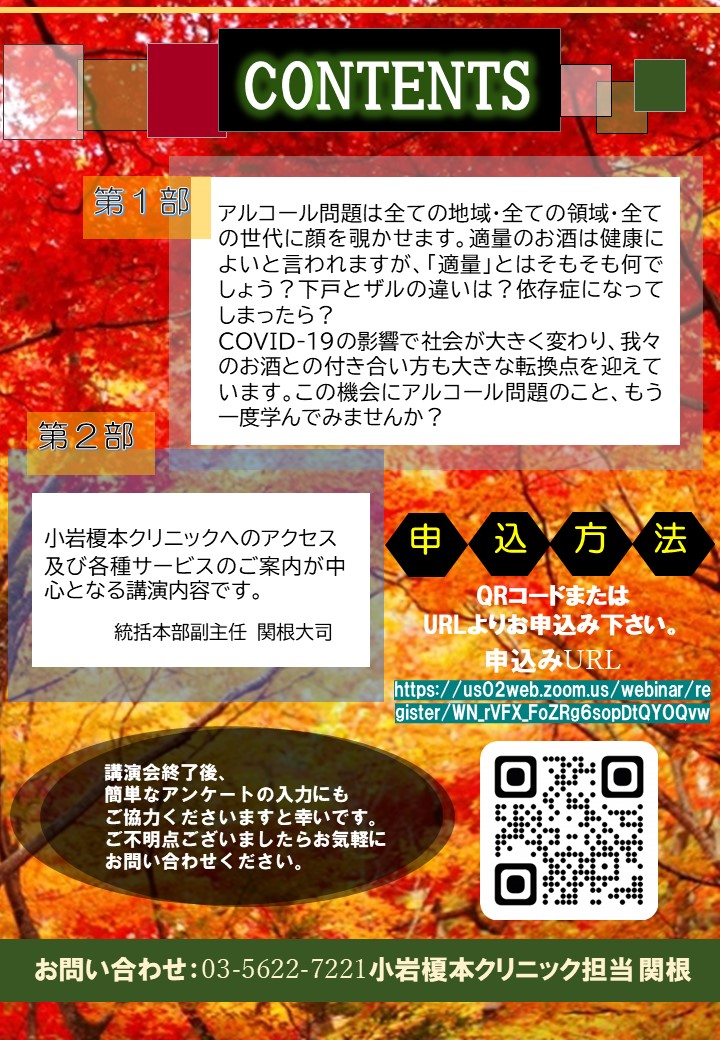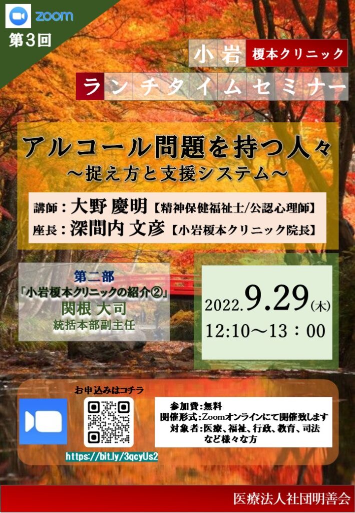【小岩】2022/9/29 Zoomランチタイムセミナー「アルコール問題を持つ人々」~捉え方と支援システム~