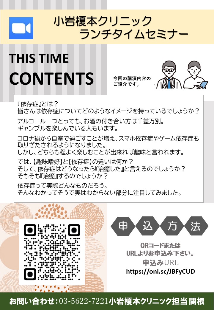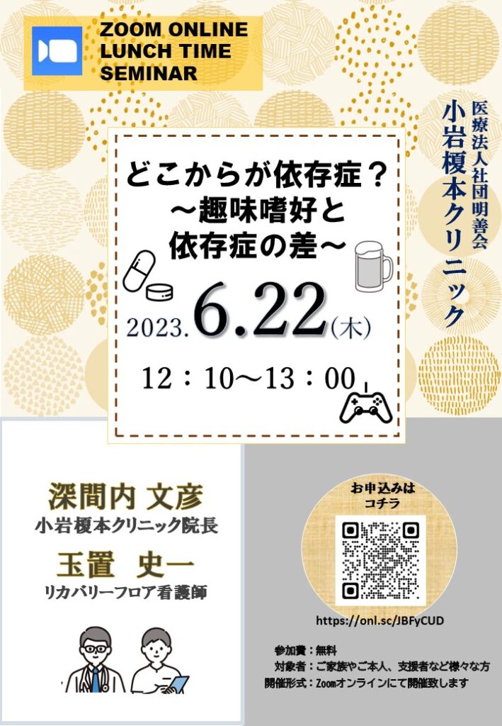 【連続セミナー④】2023.6.22 小岩「どこからが依存症?~趣味嗜好と依存症の差~」