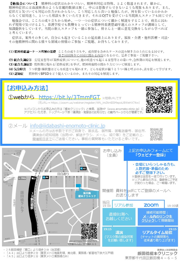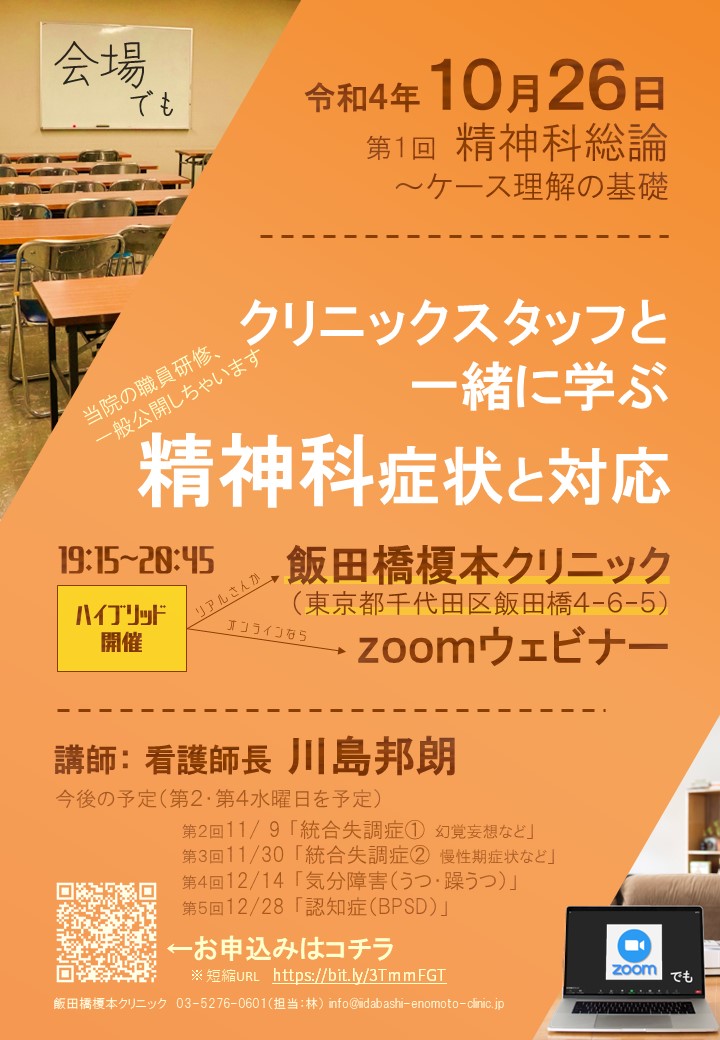 pdfはコチラ→2022.10.26飯田橋榎本Cli_ハイブリッド勉強会①精神科総論_ご案内