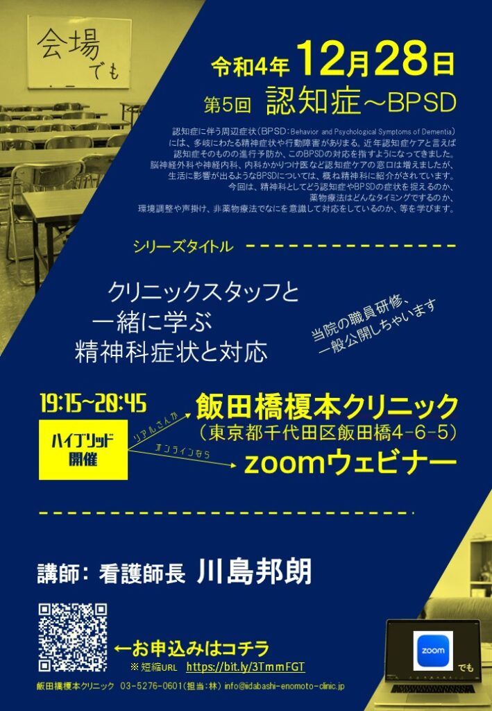 【ハイブリッド勉強会】2022.12.28第⑤回「認知症BPSD」(飯田橋)
