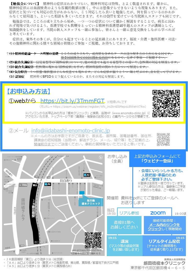 (現地)飯田橋榎本クリニック /(オンライン)zoomウェビナー
