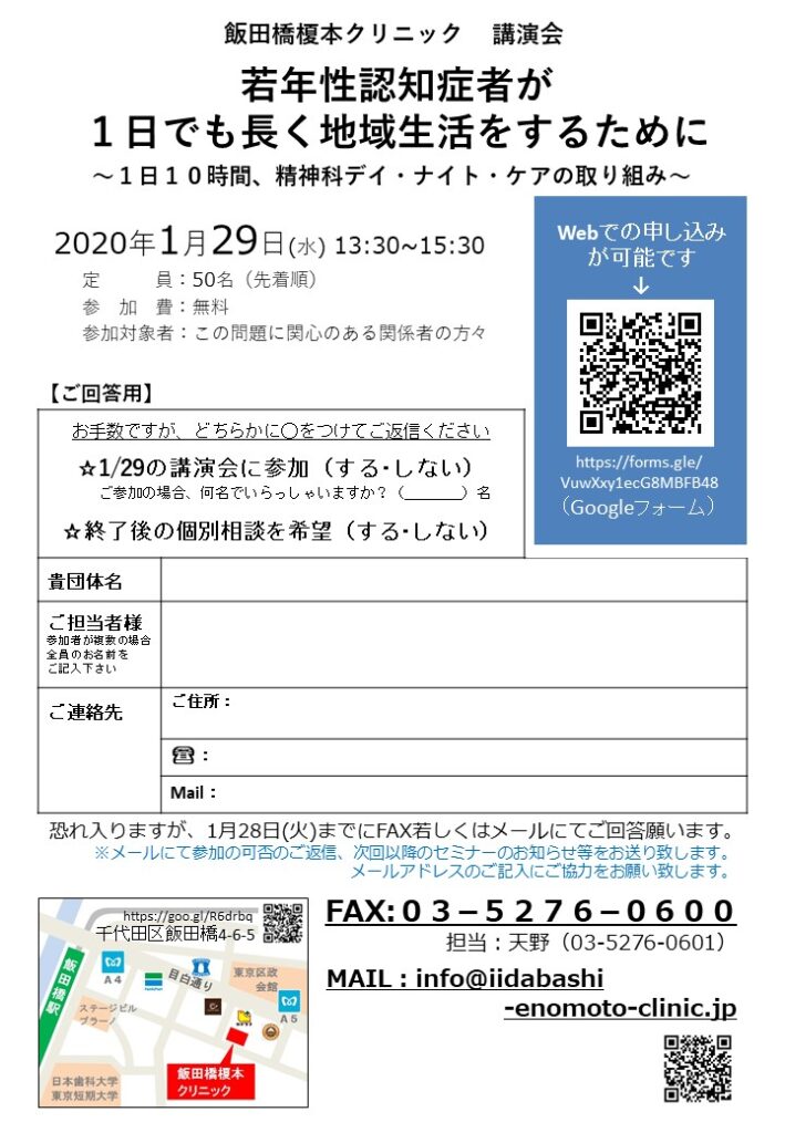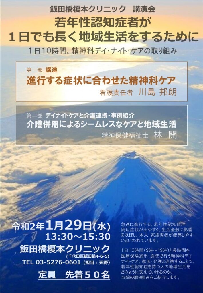 【2020.1.29(水)】飯田橋講演会「若年性認知症者が1日でも長く地域生活をするために」