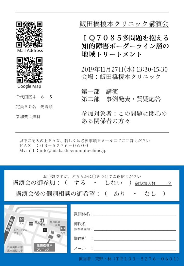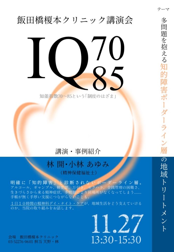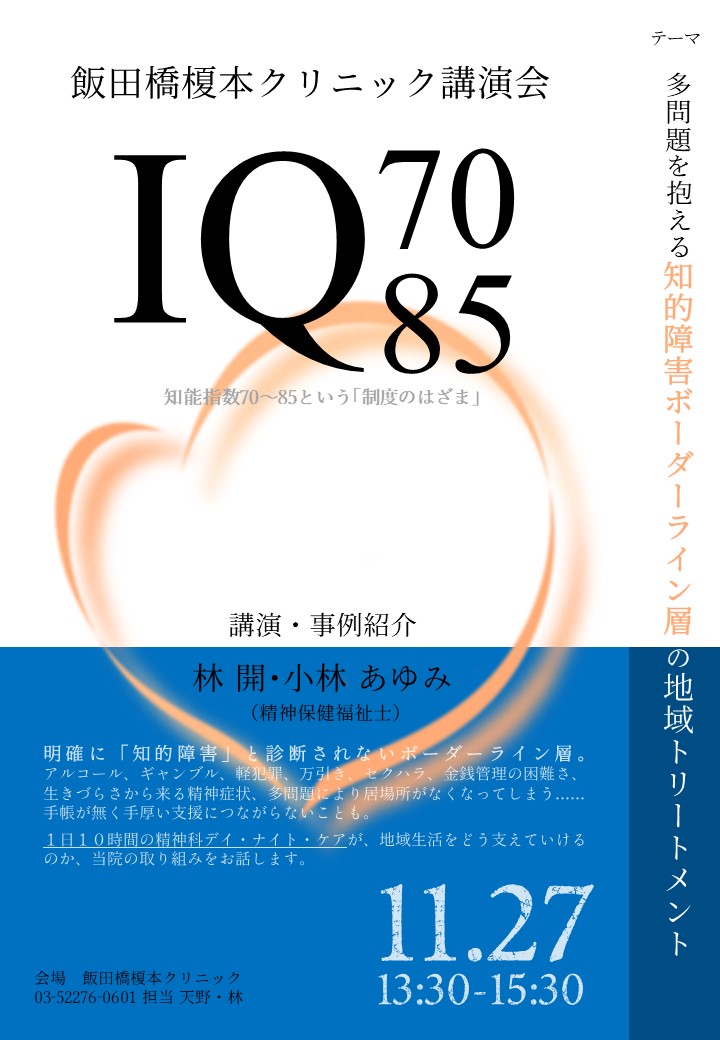 【2019.11.27(水)】飯田橋講演会:IQ7085多問題を抱える知的障害ボーダーライン層の地域トリートメント