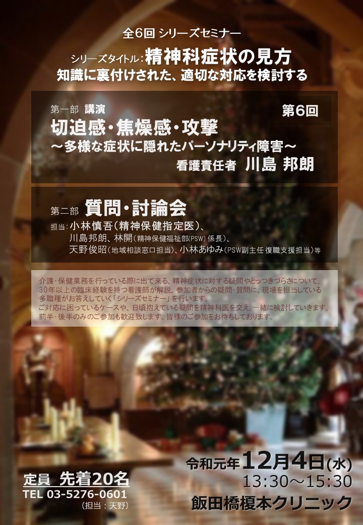 【2019.12.4(水)】飯田橋シリーズセミナー「精神症状の見方」第⑥回:パーソナリティ障害