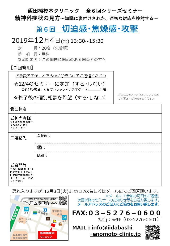 【飯田橋榎本クリニック 全6回シリーズセミナー】