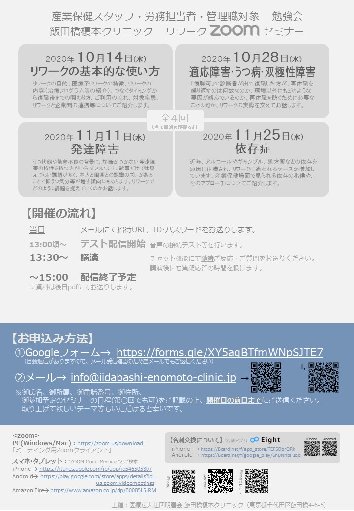 チラシpdf→2020.10.14飯田橋リワークセミナー①リワークの使い方
