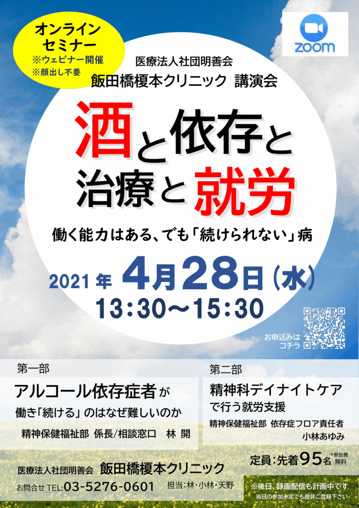 pdfはコチラ→2021.04.28飯田橋榎本Cli「酒と依存と治療と就労」講演会チラシ
