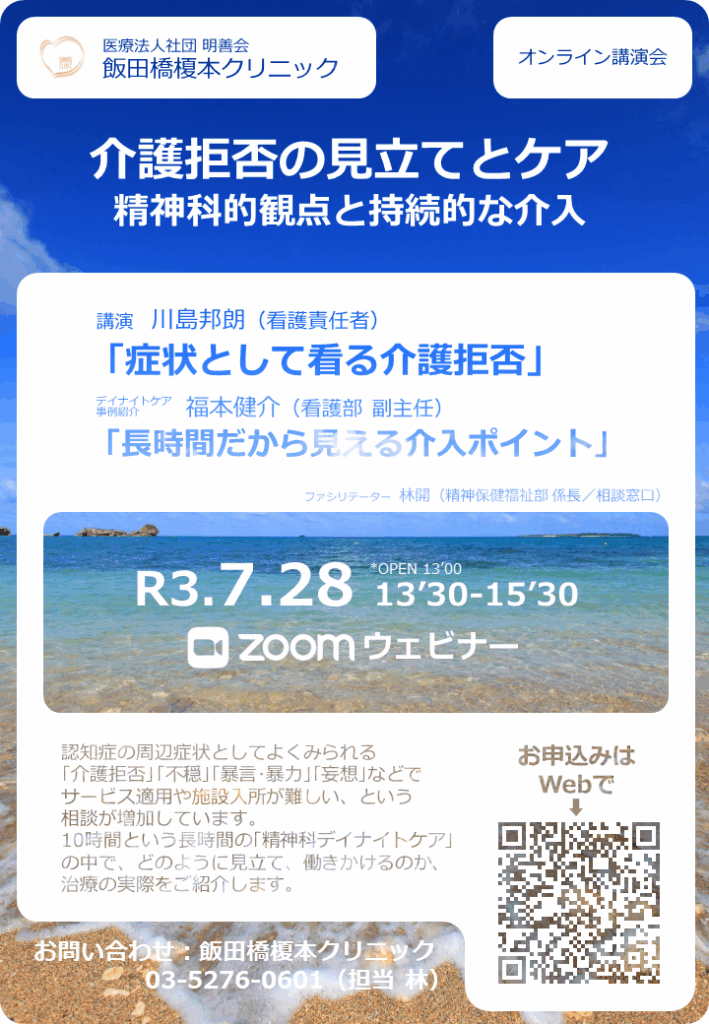 pdfはコチラ→2021.7.28飯田橋榎本Cli「介護拒否の見立てとケア」講演会ご案内