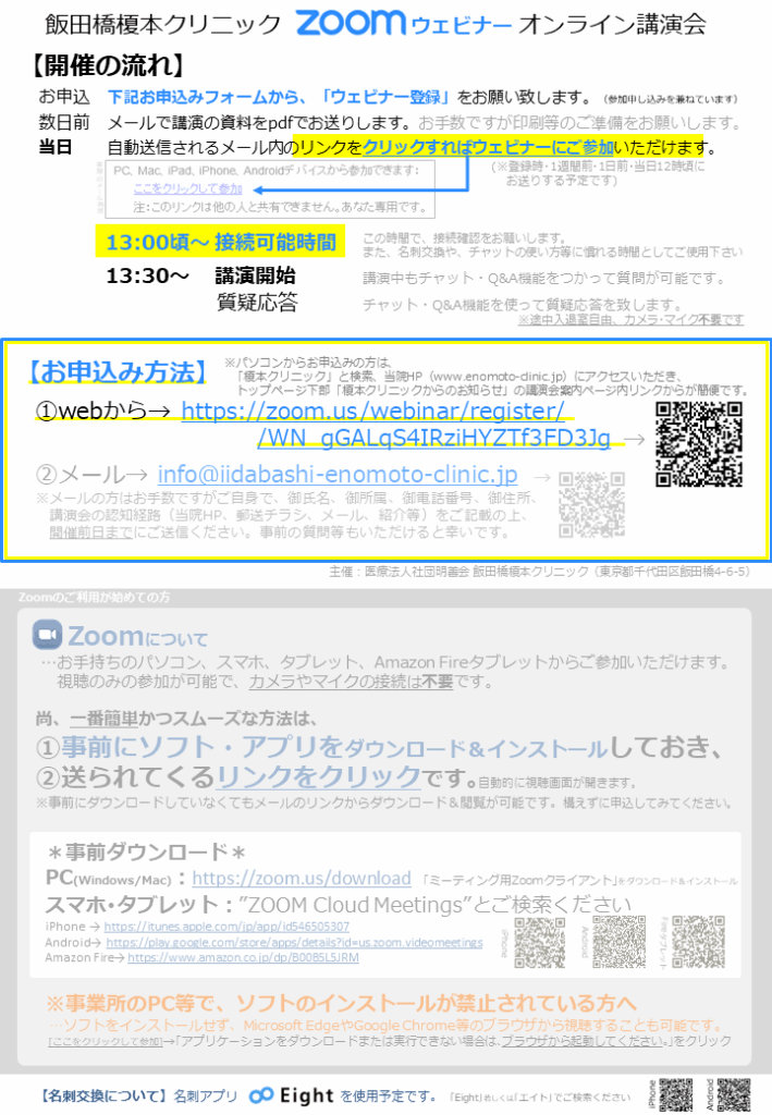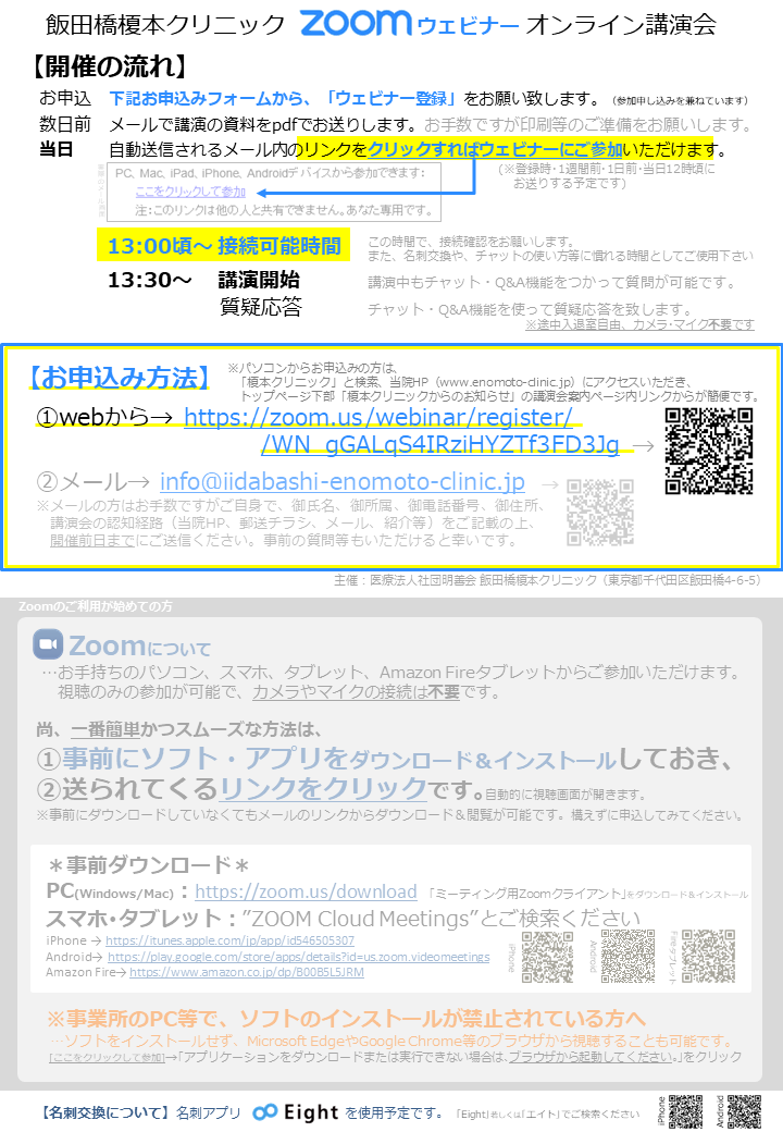 【飯田橋榎本クリニック zoomオンライン講演会】