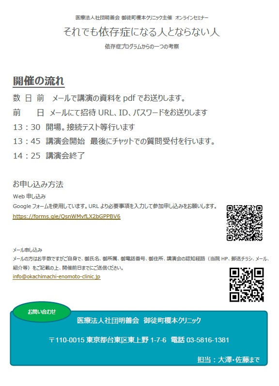 【御徒町榎本クリニック主催 Zoom講演会】