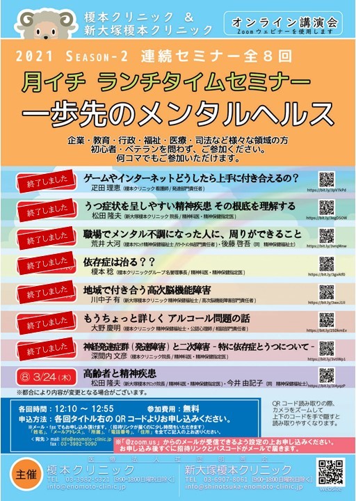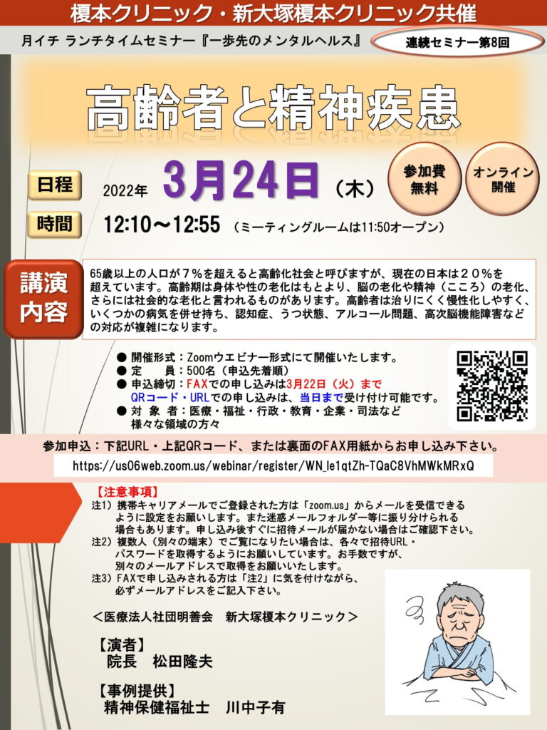 【2022/3/24】Zoomランチタイムセミナー⑧「高齢者と精神疾患」