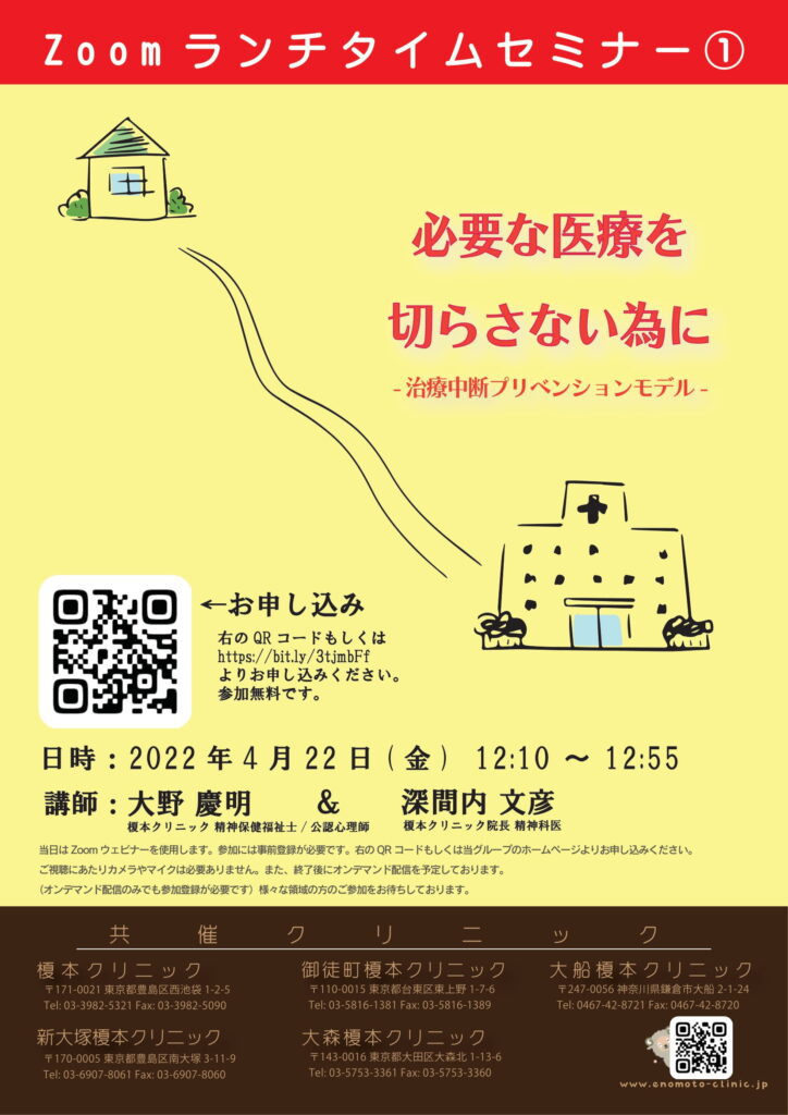 【2022/4/22】Zoomランチタイムセミナ-① 「必要な治療を継続的に行うために- 治療中断プリベンションモデル -」