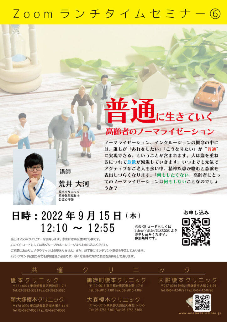 【2022/9/15】Zoomランチタイムセミナ-⑥ 「普通に生きていく〜高齢者のノーマライゼーション〜」