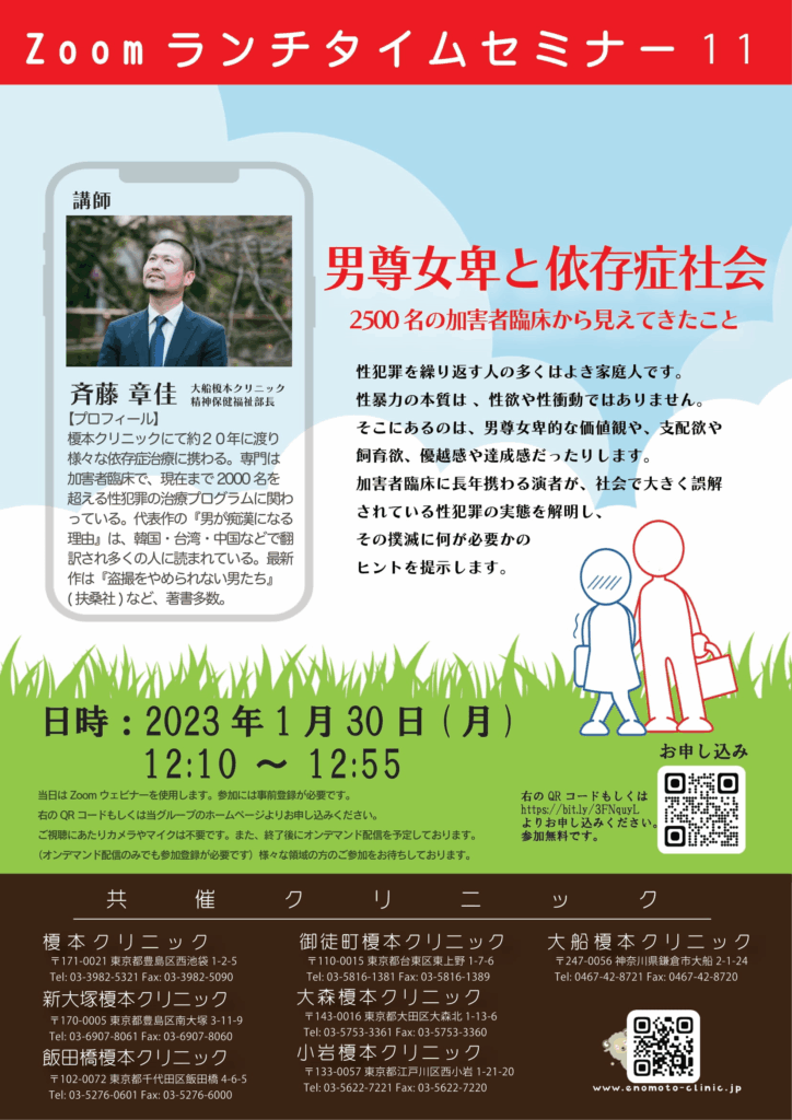 【zoomランチタイムセミナー⑪】2023.01.30 「男尊女卑と依存症社会」