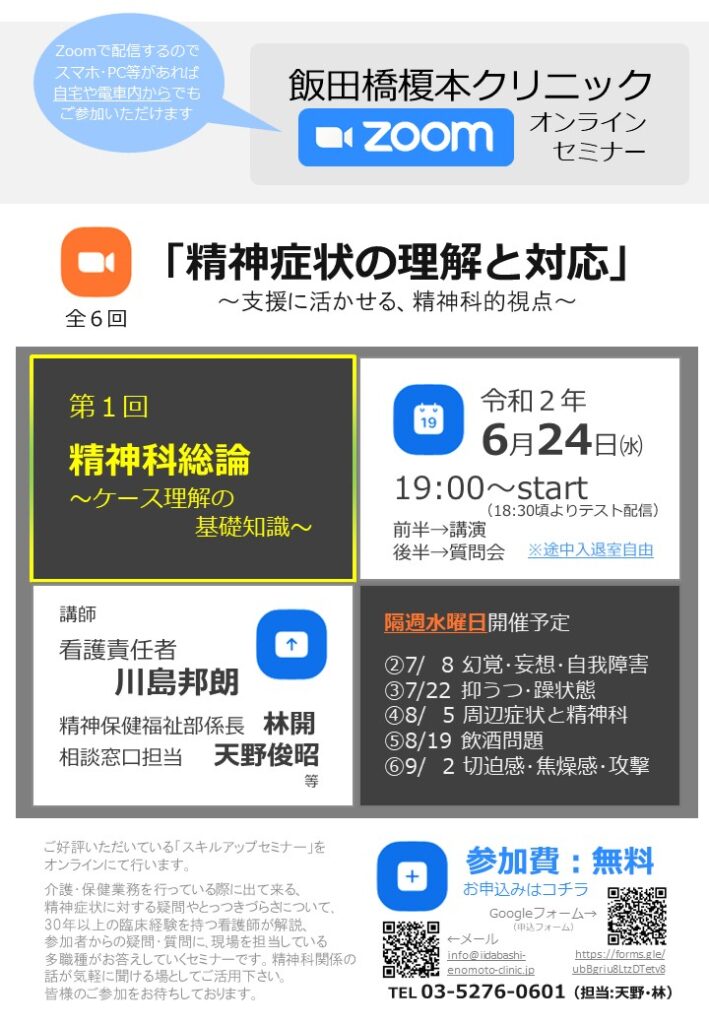 【飯田橋榎本クリニック 全6回Zoomオンラインセミナー】