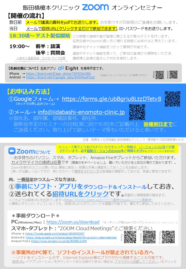 【飯田橋榎本クリニック 全6回Zoomオンラインセミナー】