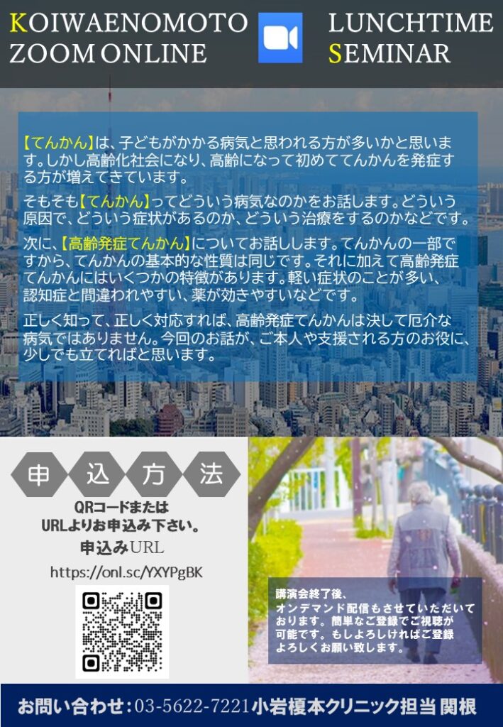 【zoomランチタイムセミナー】2023.4.13 小岩「高齢発症のてんかん」