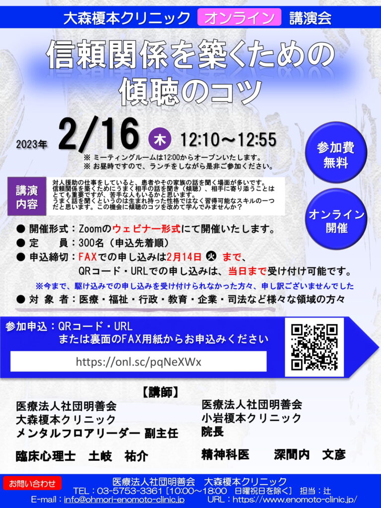 大森榎本クリニック主催 zoom講演会
