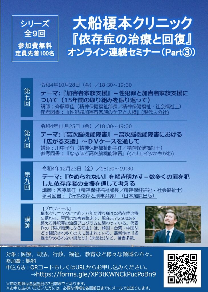 大船榎本クリニック 「依存症の治療と回復」 オンライン連続セミナー(part③)