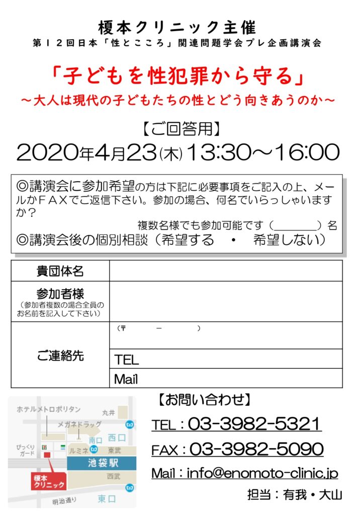 ■■延期■■ 第12回日本「性とこころ」関連問題学会プレ企画講演会