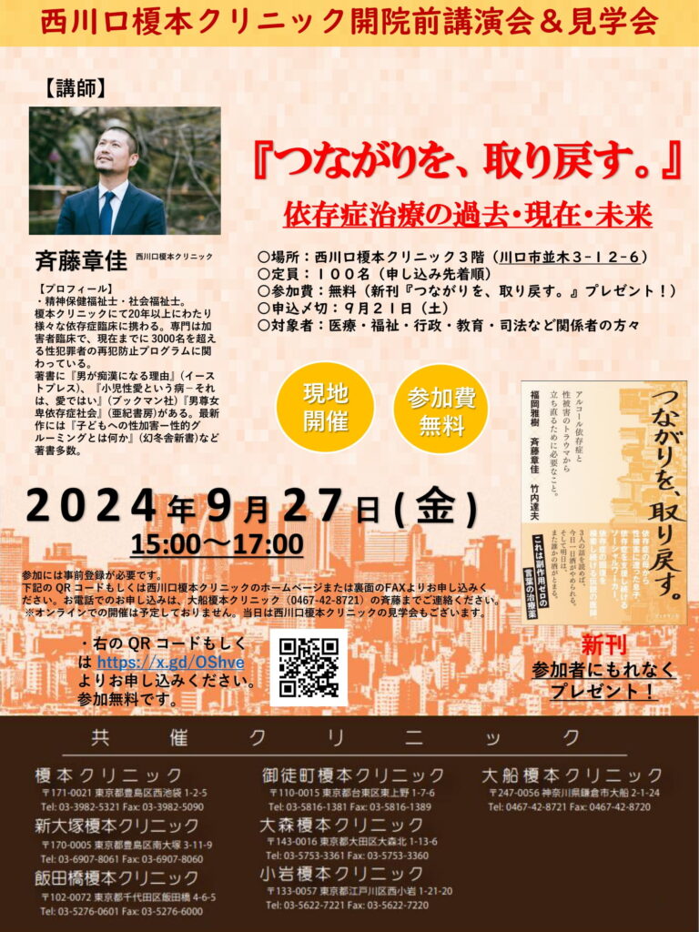 西川口榎本クリニック開院前講演会&見学会 『つながりを、取り戻す。』-依存症治療の過去・現在・未来