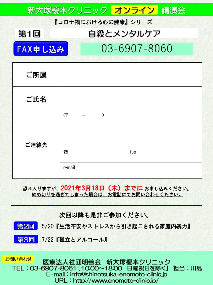 『コロナ禍における心の健康』 ~シリーズ全3回~ 第1回自殺とメンタルケア