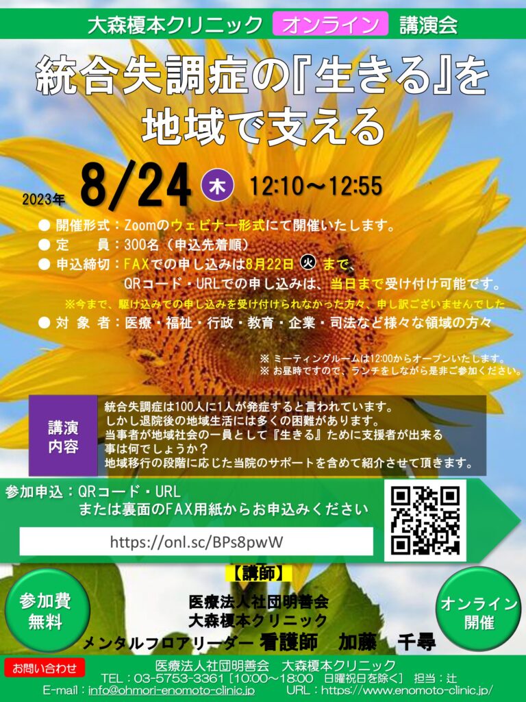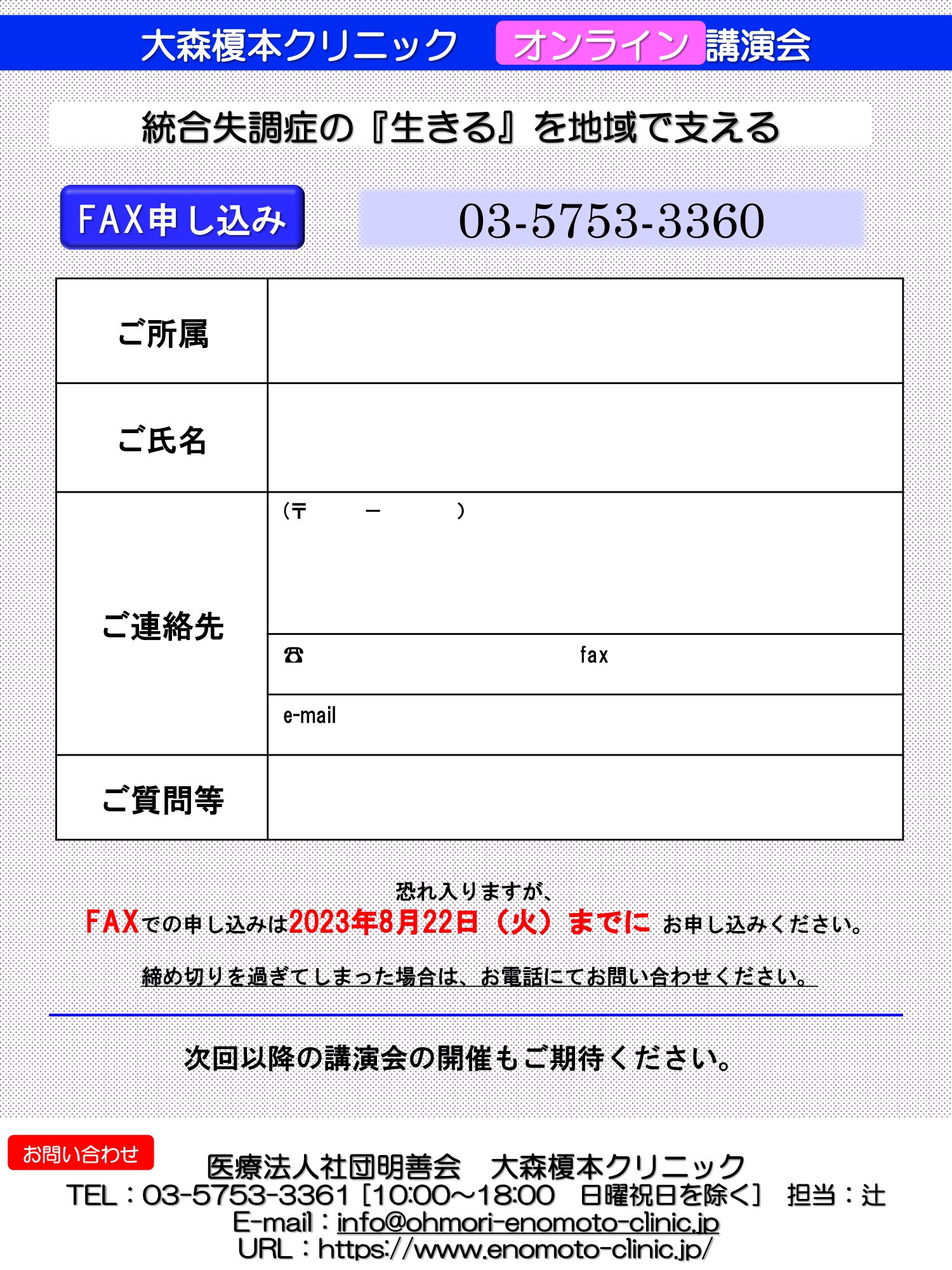 【大森榎本クリニック主催 zoom講演会2023上半期】