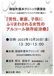 【リアルのみ】2023.10.20 御徒町「男性、家庭、子供にふりまわされる女性のアルコール依存症治療」