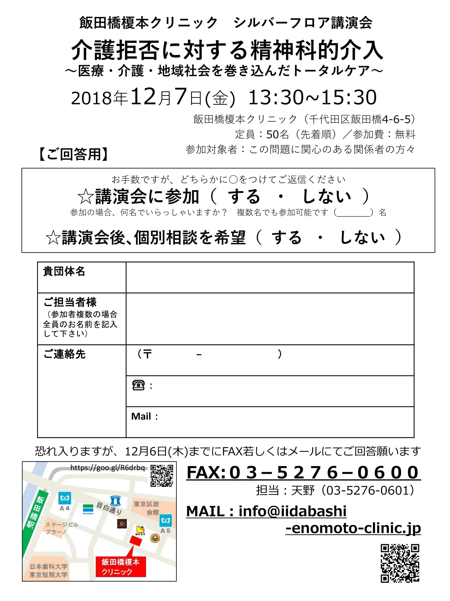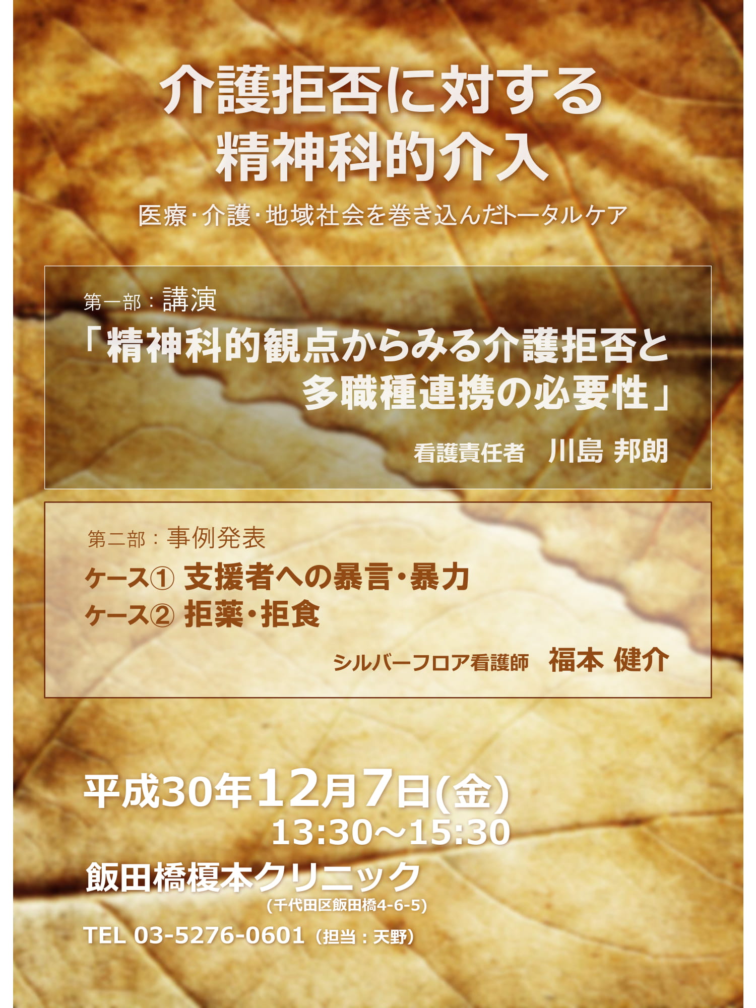 【2018.12.7(金)】飯田橋シルバーフロア講演会「介護拒否に対する精神科的介入」