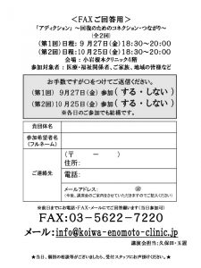 【2019.9.27(金)】小岩榎本クリニック 講演会 『アディクション』