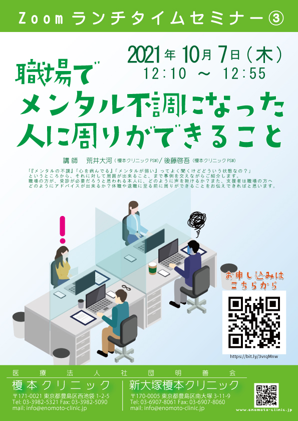 【2021/10/7】Zoomランチタイムセミナー③『職場でメンタル不調になった人に周りができること』