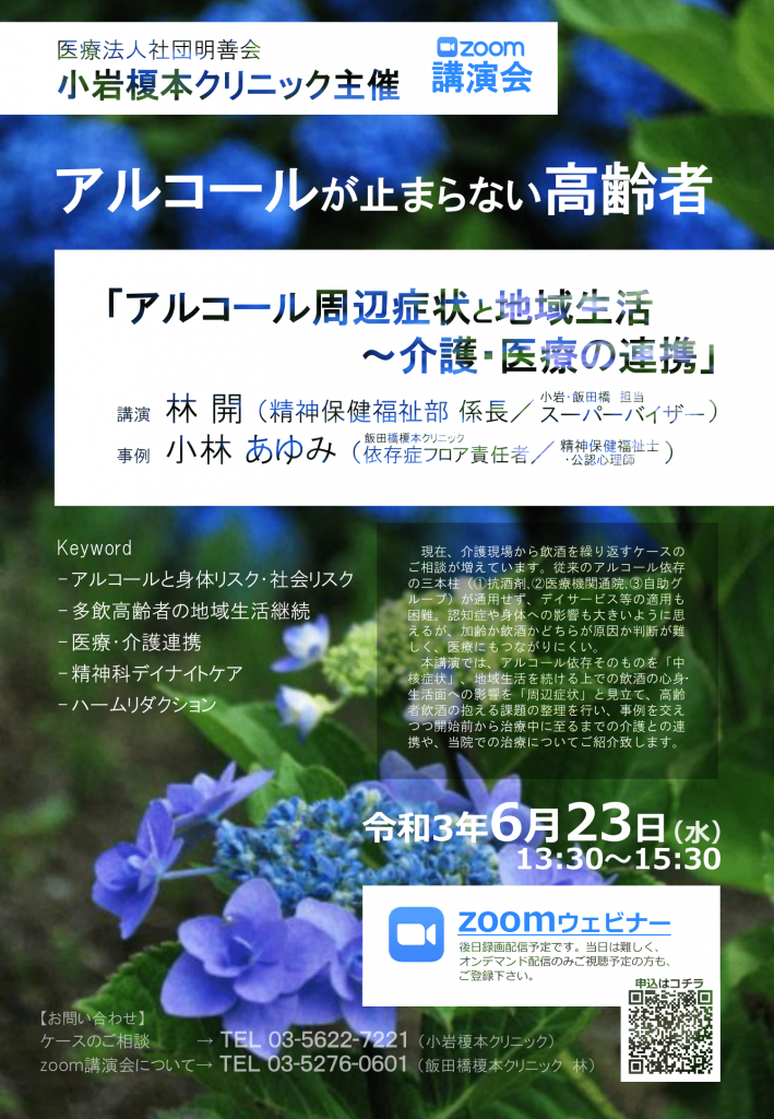 pdfはコチラ→2021.6.23小岩榎本Cli「アルコールが止まらない高齢者」講演会ご案内
