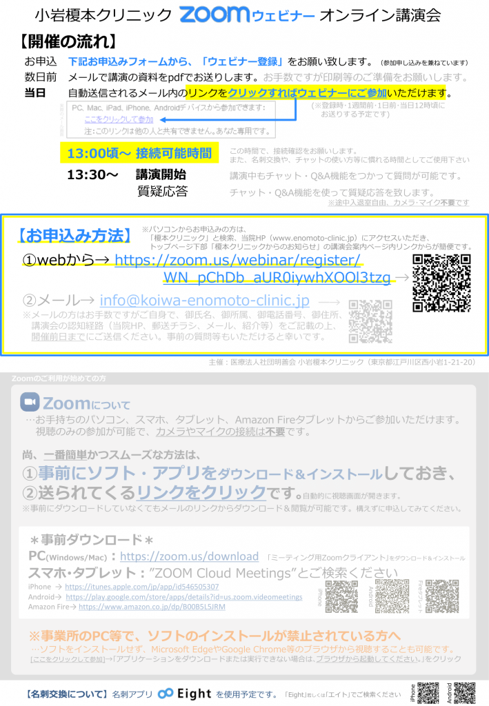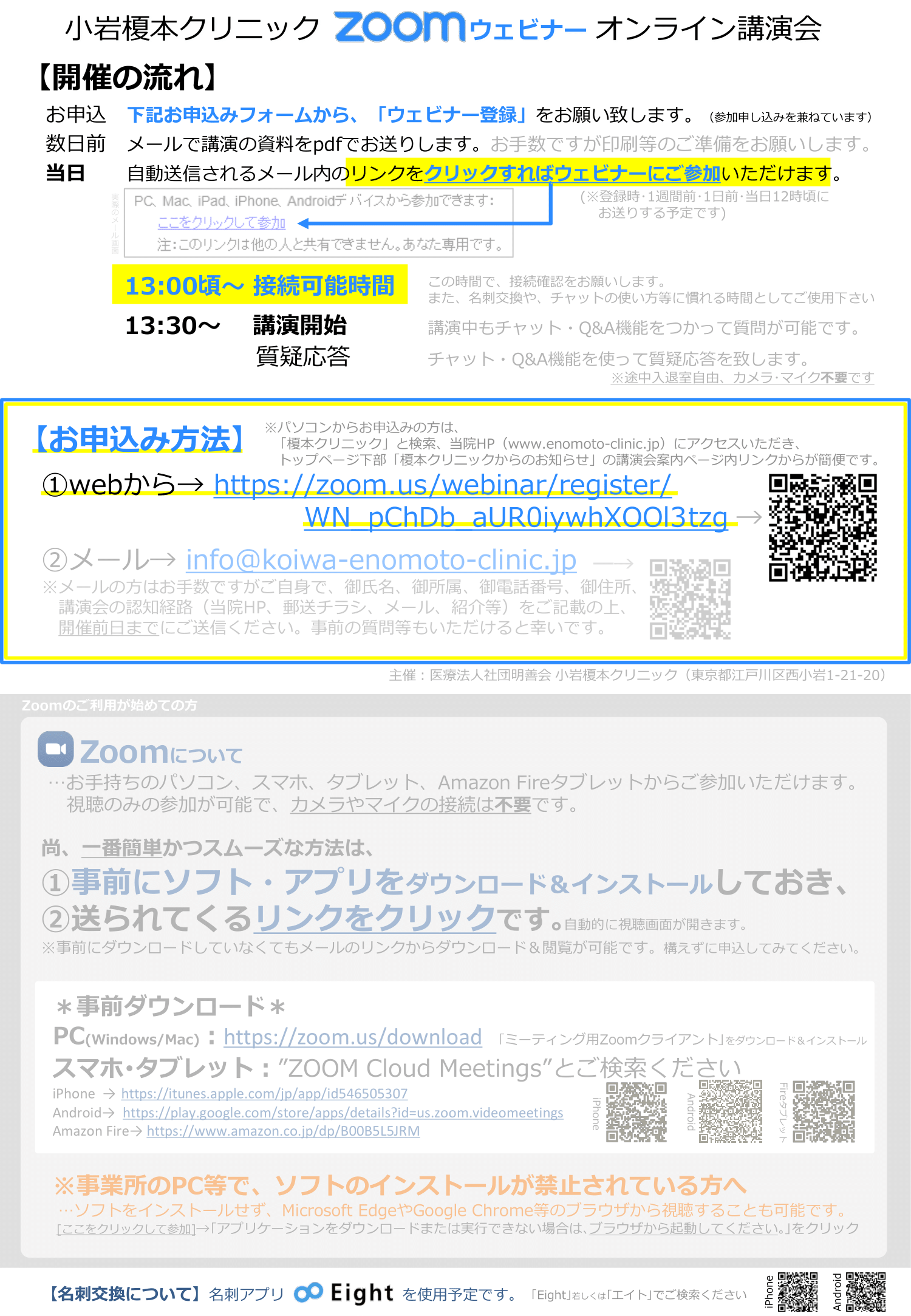 ・ウェビナーについて:03-5276-0601(飯田橋榎本クリニック 林)