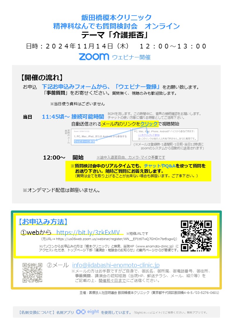 pdfはコチラ→2024.11.14飯田橋榎本クリニック「介護拒否」精神科質問検討会
