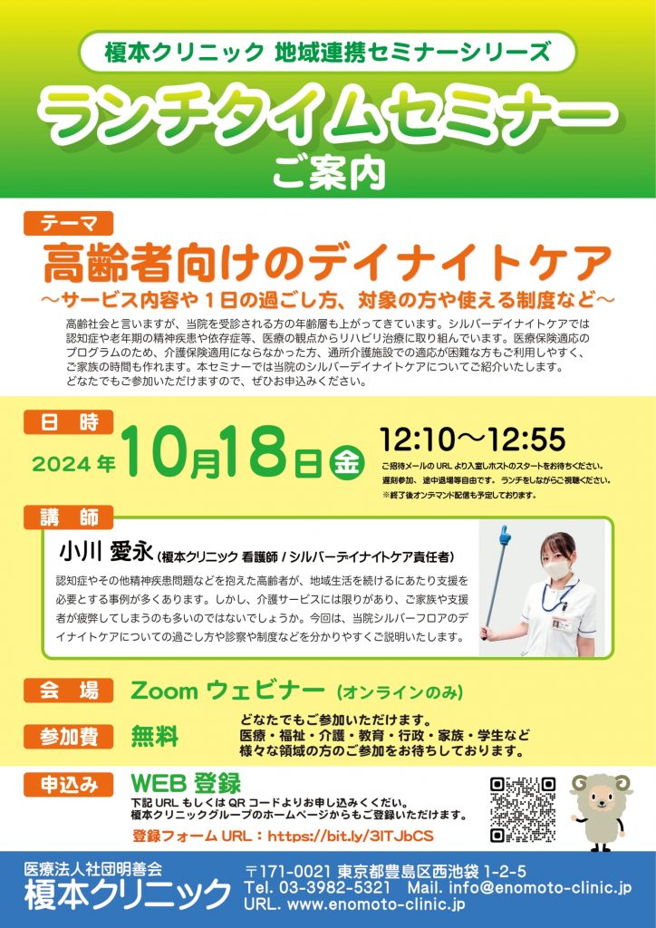 【Zoom】2024.10.18池袋 ランチタイムセミナー「高齢者向けのデイナイトケア 」