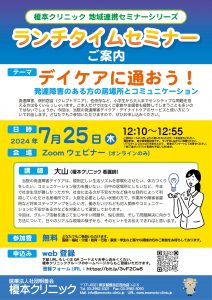 【zoom】2024.7.25池袋 ランチタイムセミナー「デイケアに通おう!(発達障害)」