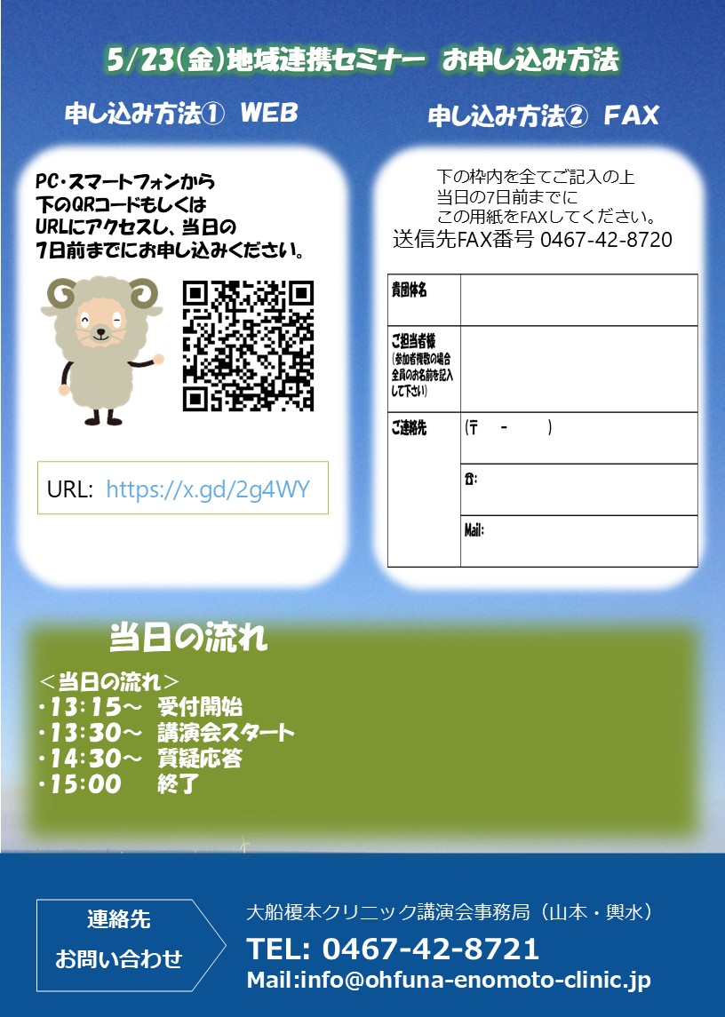 | お問合せ | 大船榎本クリニック(山本・輿水) TEL 0467-42-8721 メールはコチラ  |