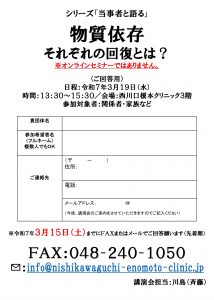 西川口榎本クリニック 連続セミナー③シリーズ:「当事者と語る」 物質依存