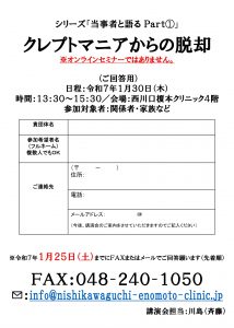 西川口榎本クリニック連続セミナー 第1回 シリーズ「当事者と語る」 クレプトマニアからの脱却