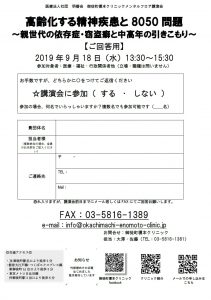 【2019.9.18(水)】御徒町榎本クリニック メンタルフロア講演会 高齢化する精神疾患と8050問題