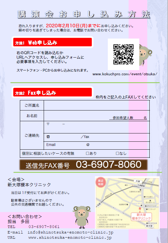 ■ 会 場 :新大塚榎本クリニック 東京都豊島区南大塚3-11-9