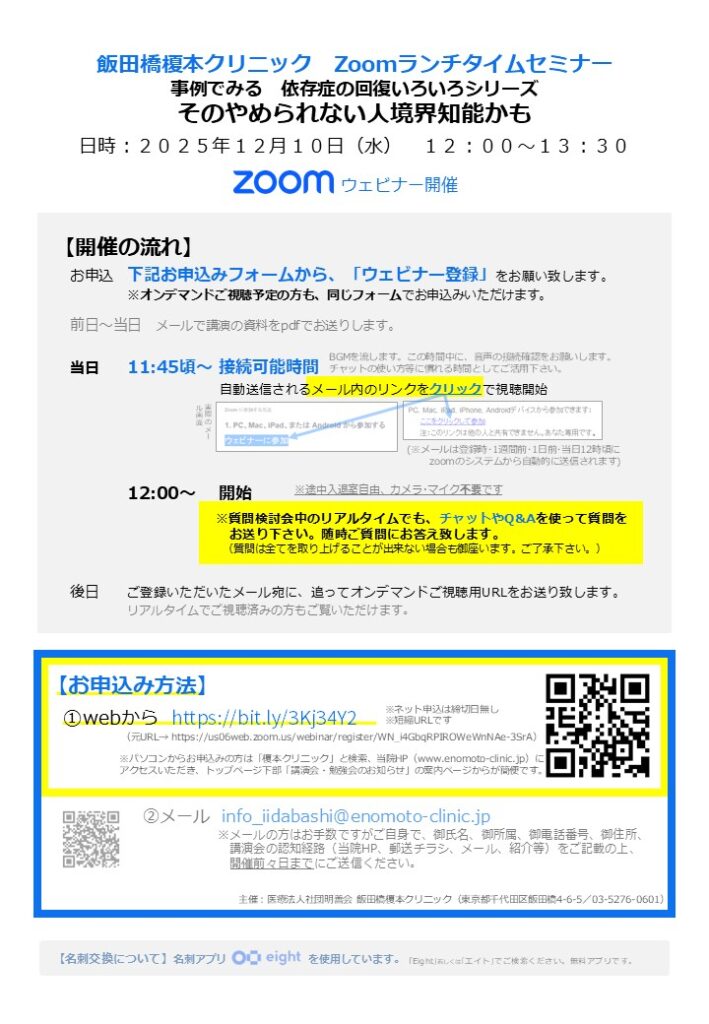 飯田橋榎本クリニック zoomランチタイムセミナー