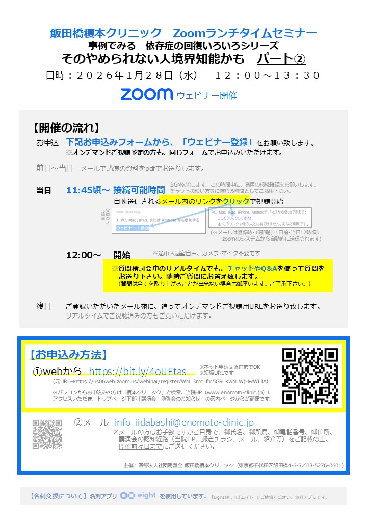 飯田橋榎本クリニック zoomランチタイムセミナー