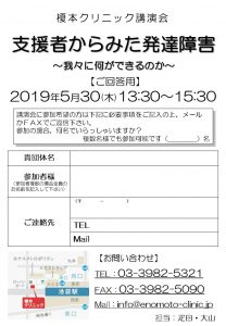 【2019.5.30(木)】池袋榎本クリニック エデュケーションフロア講演会「支援者からみた発達障害~我々に何ができるのか~」
