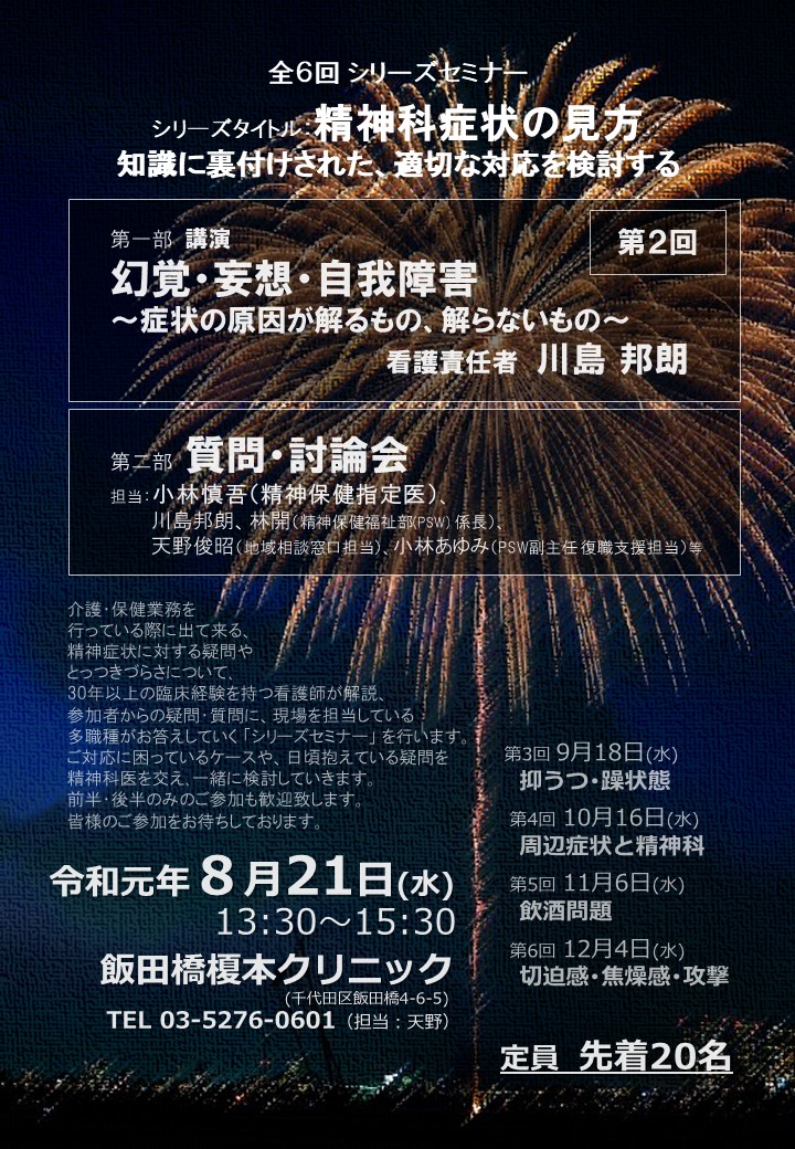 【2019.8.21(水)】飯田橋シリーズセミナー「精神症状の見方」第②回:幻覚・妄想・自我障害
