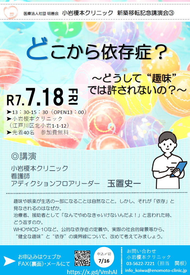 【リアルのみ】2025.7.18 小岩「どこから依存症?~どうして”趣味”では許されないの?~」