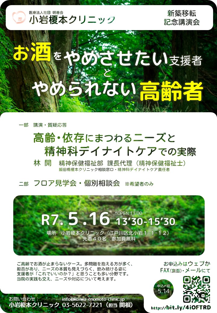【リアルのみ】2025.5.16 小岩「お酒をやめさせたい支援者とやめられない高齢者」新築移転記念講演会